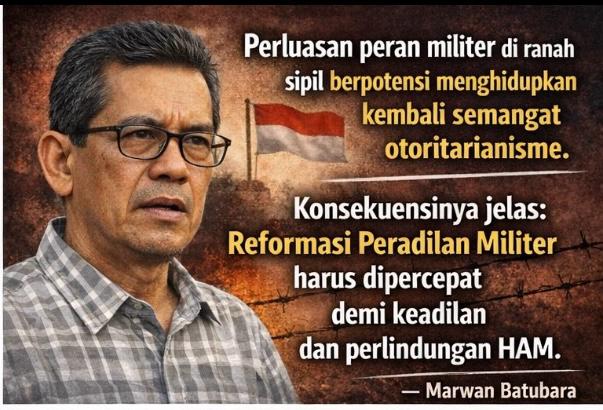 Direktur Indonesia Resources Studies (IRESS), Marwan Batubara, mengemukakan kritik tajam terhadap peningkatan keterlibatan militer dalam sektor-sektor sipil yang seharusnya dikelola dengan prinsip demokrasi. Ia menganggap fenomena ini tidak bisa dipandang sepele, karena dapat merusak prinsip supremasi sipil yang menjadi landasan utama sistem pemerintahan setelah reformasi. Ia menekankan bahwa demokrasi yang sehat membutuhkan pemisahan peran yang jelas antara otoritas militer dan sipil.