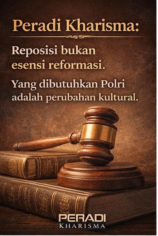 Peradi Kharisma menegaskan bahwa reformasi Polri bukanlah soal memindahkan posisi kelembagaan, melainkan bagaimana membangun kultur yang berorientasi pada pelayanan publik, penegakan hukum yang berkeadilan, serta penghormatan terhadap prinsip-prinsip hak asasi manusia. Tanpa perubahan kultural yang nyata, reposisi kelembagaan dinilai tidak akan memberikan dampak signifikan terhadap kualitas kinerja kepolisian di lapangan.